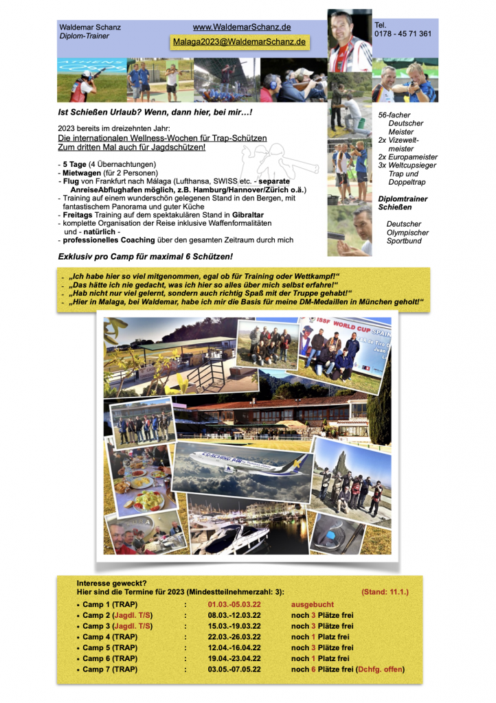 Schützen und auch Jäger aus ganz Deutschland, aus der Schweiz und Österreich, alle haben sie es schon erlebt, wie es ist, bei angenehmen Temperaturen, dann, wenn es zuhause noch kalt und unfreundlich stürmt und vielleicht auch schneit, in dünnem Pulli oder im T-Shirt und kurzen Hosen (je nach Zeitraum) richtig in die Saison zu starten.